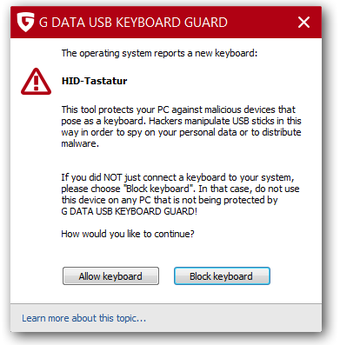G DATA USB Keyboard Guard es muy sencillo, funciona automáticamente y carece de configuración.